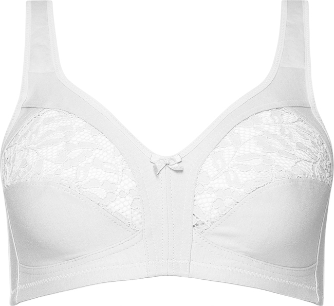 Košíčky jsou navrženy ve dvou dílech – spodní část z měkké bavlny poskytuje příjemný kontakt s pokožkou, zatímco horní krajkový lem dodává podprsence lehkost a elegantní vzhled. Absence kostic zajišťuje maximální volnost a pohodlí po celý den.